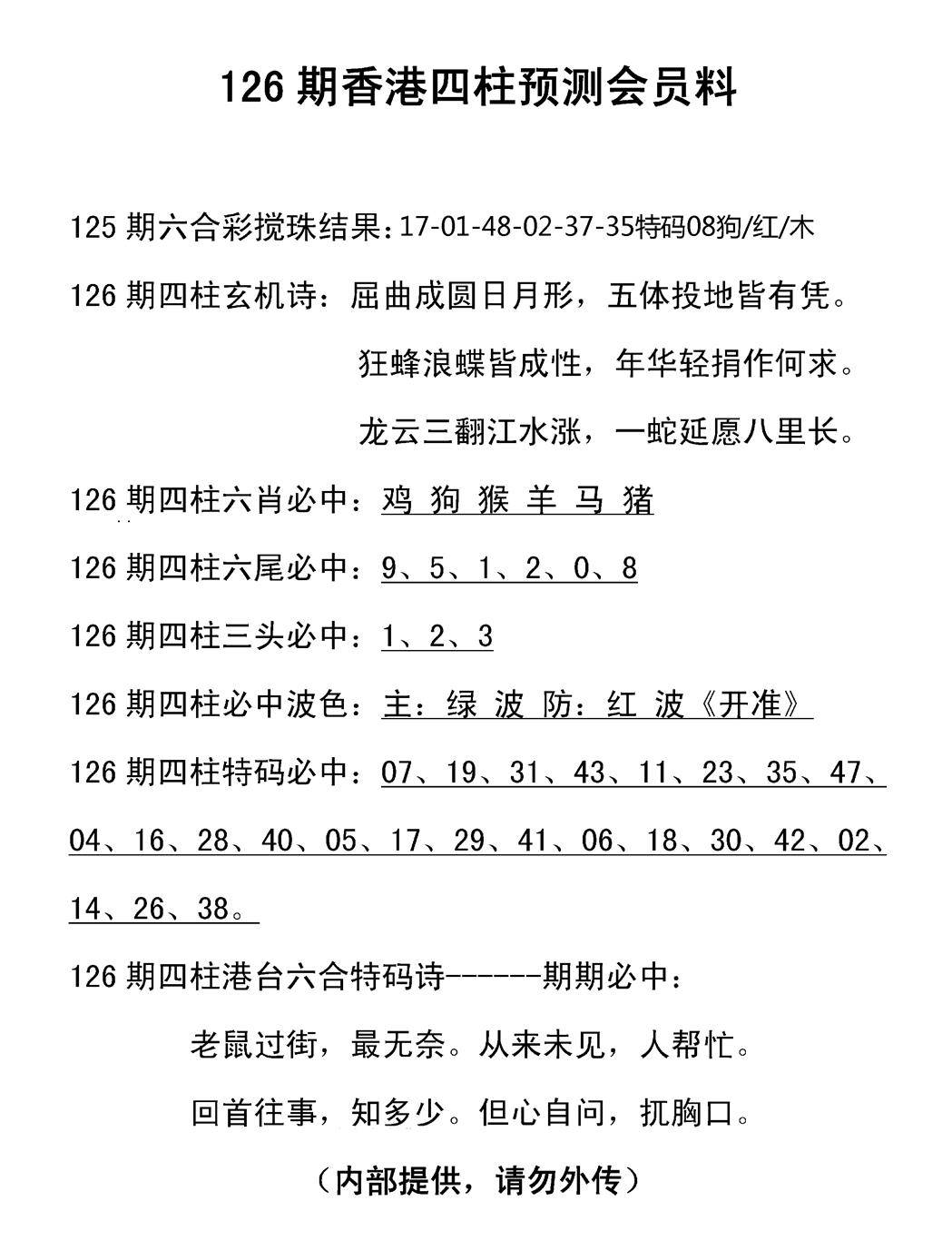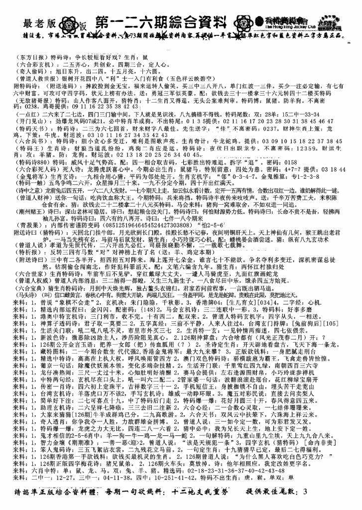 (香港来料)马报